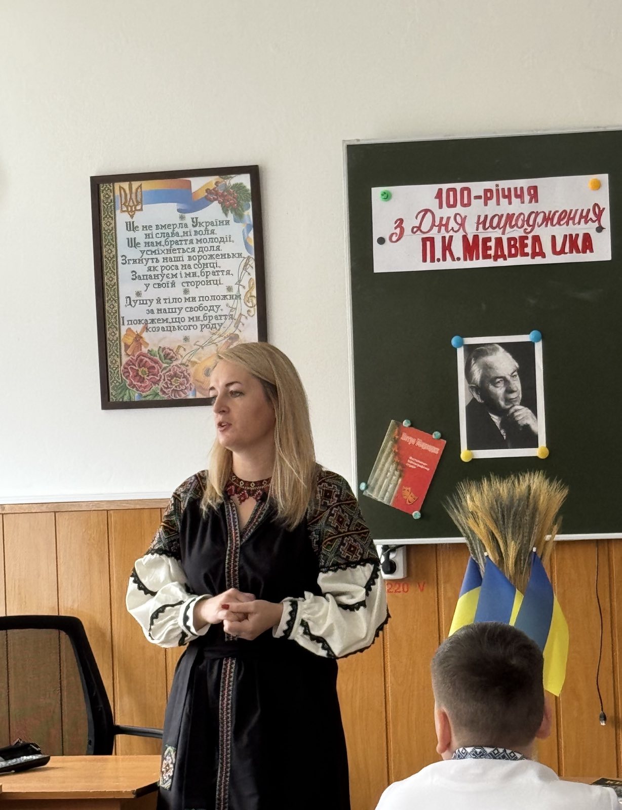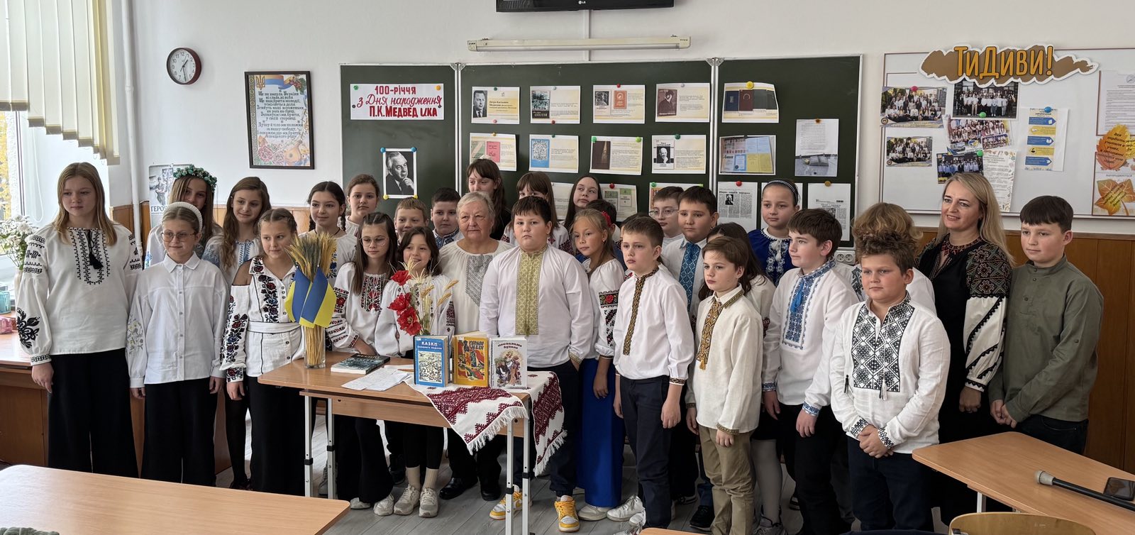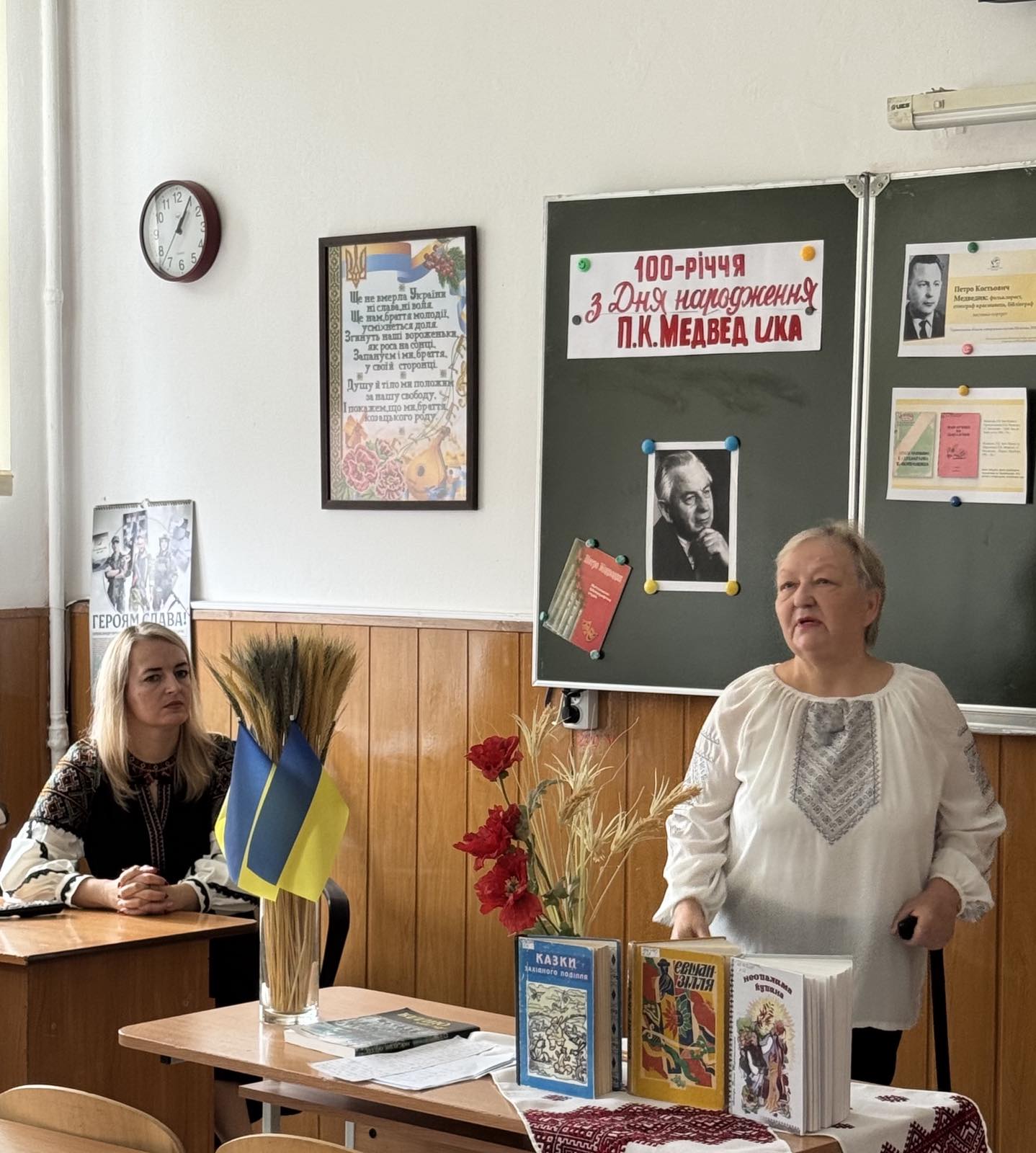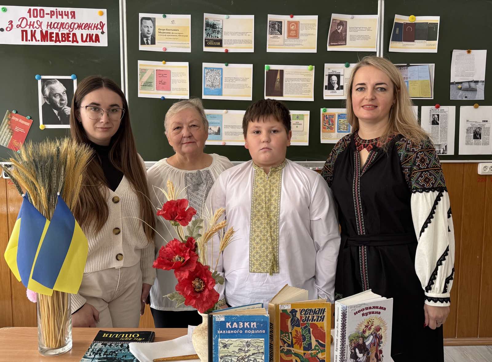 Урок літератури рідного краю присвячений 100-річчю від Дня народження Петра Костьовича Медведика, відомого фольклориста, етнографа, краєзнавця, провели у 5-В класі Лотоцька Ольга Михайлівна, вчитель української мови і літератури, та Вишневська Лариса Петрівна, донька мистецтвознавця та вчитель хімії.