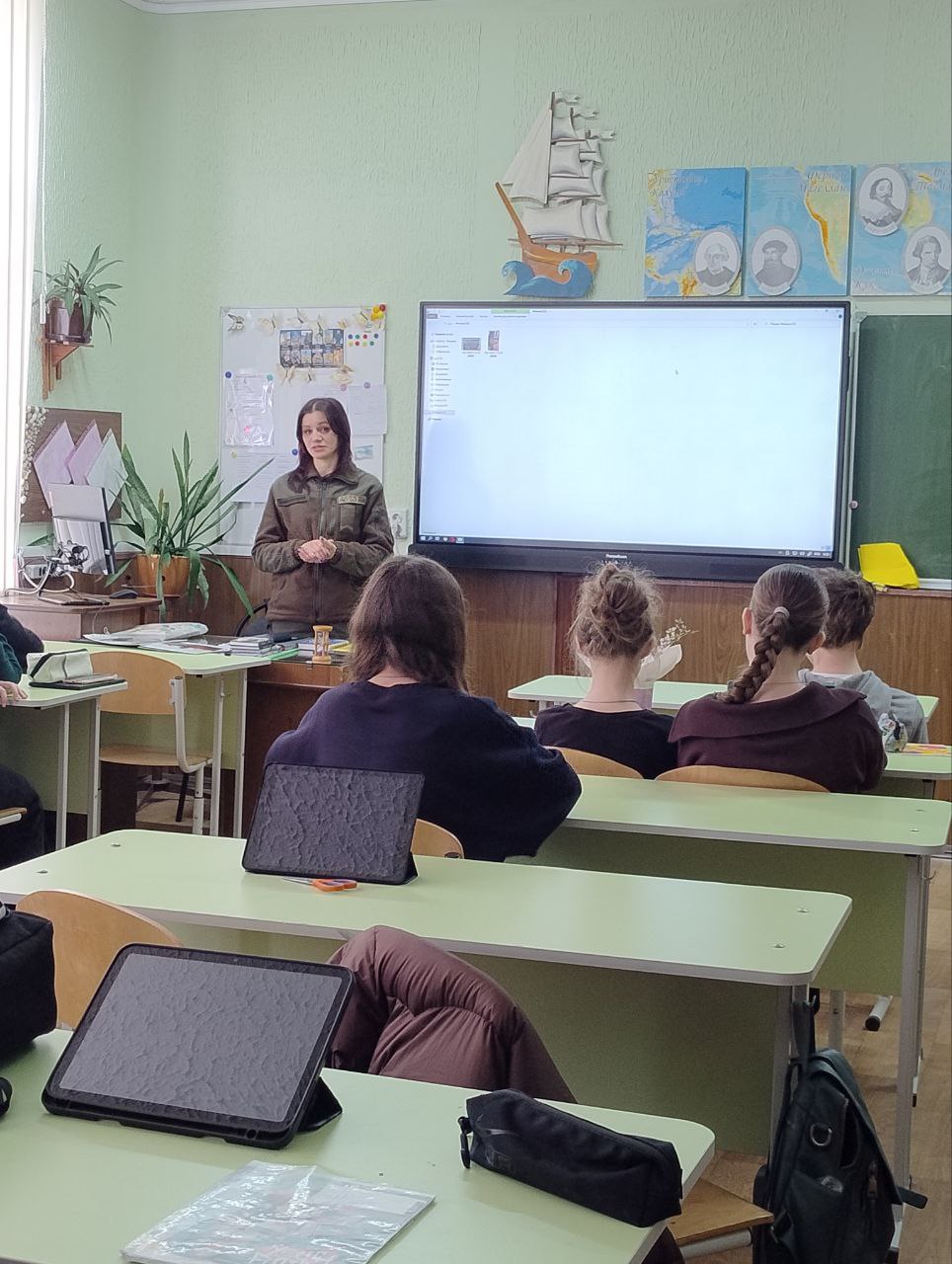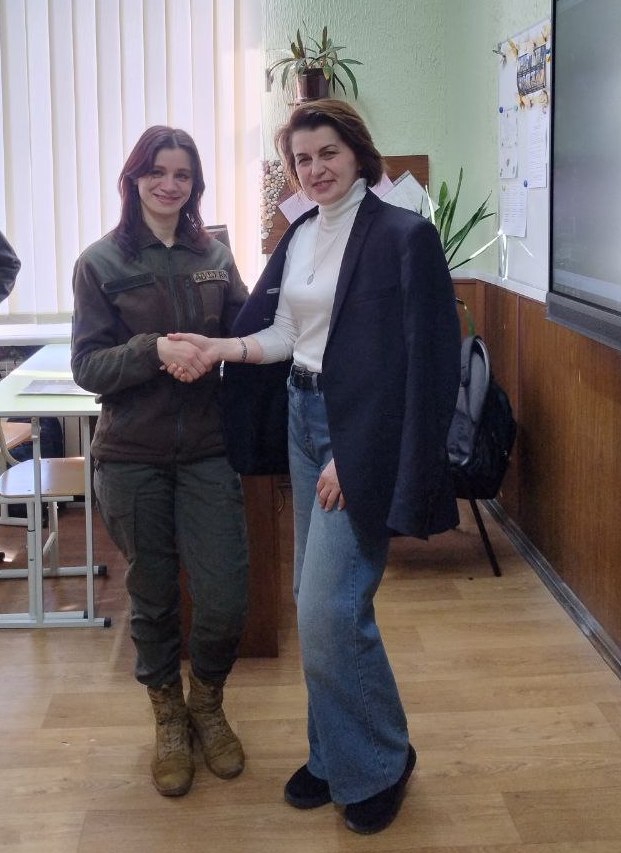 Під час зустрічі учні також переглянули фільм, у якому знялася українська військова разом зі своєю донькою.