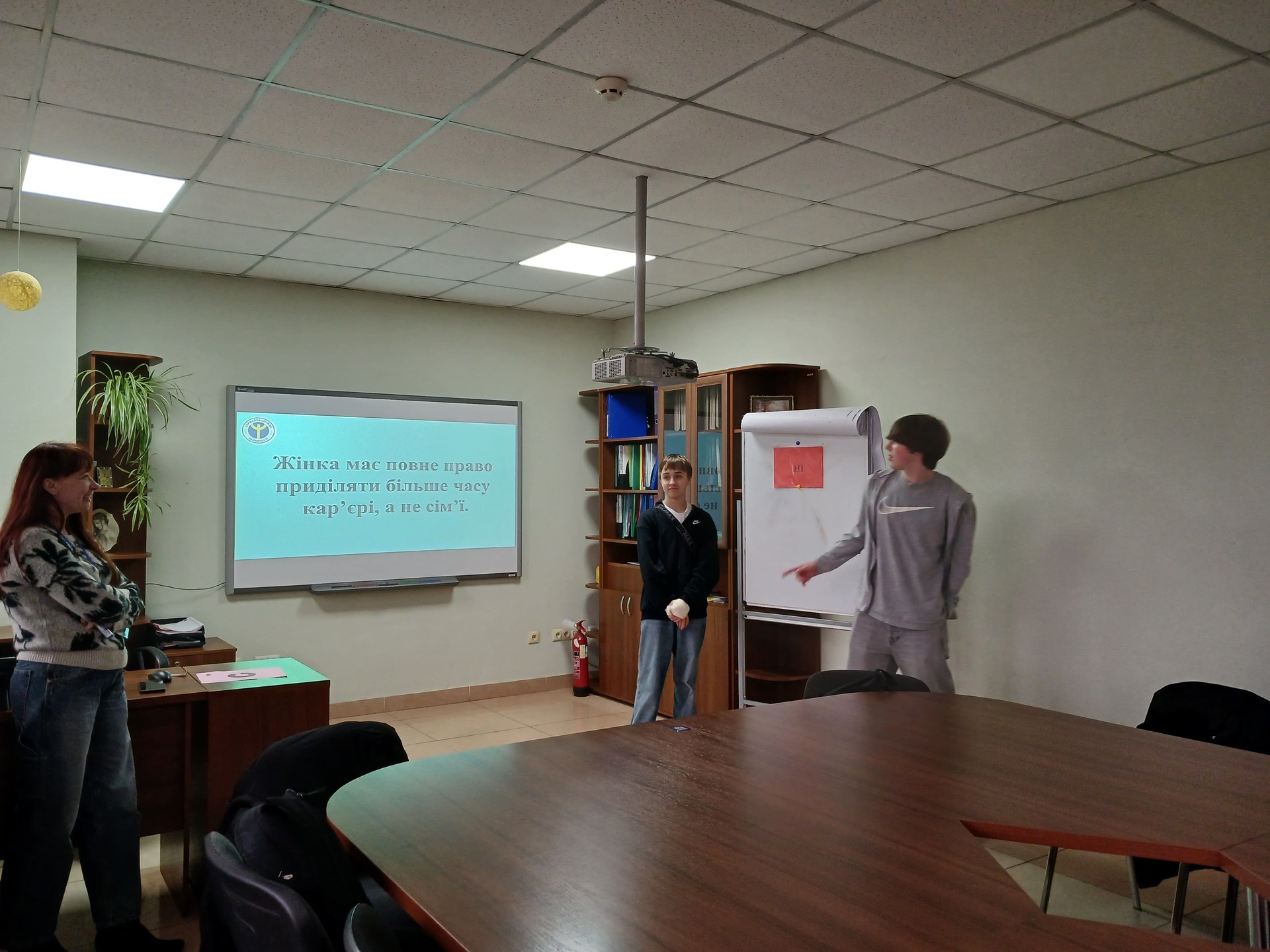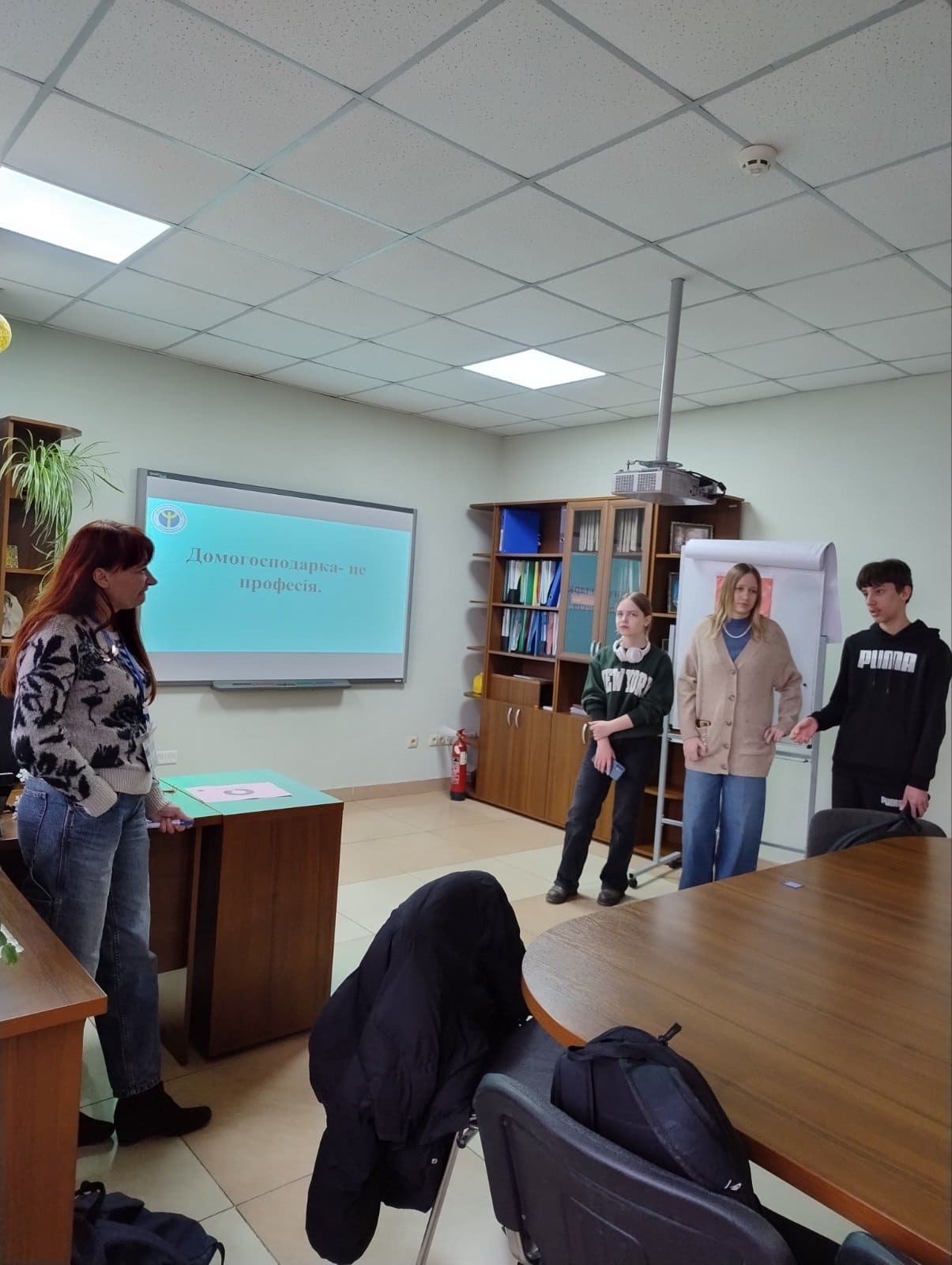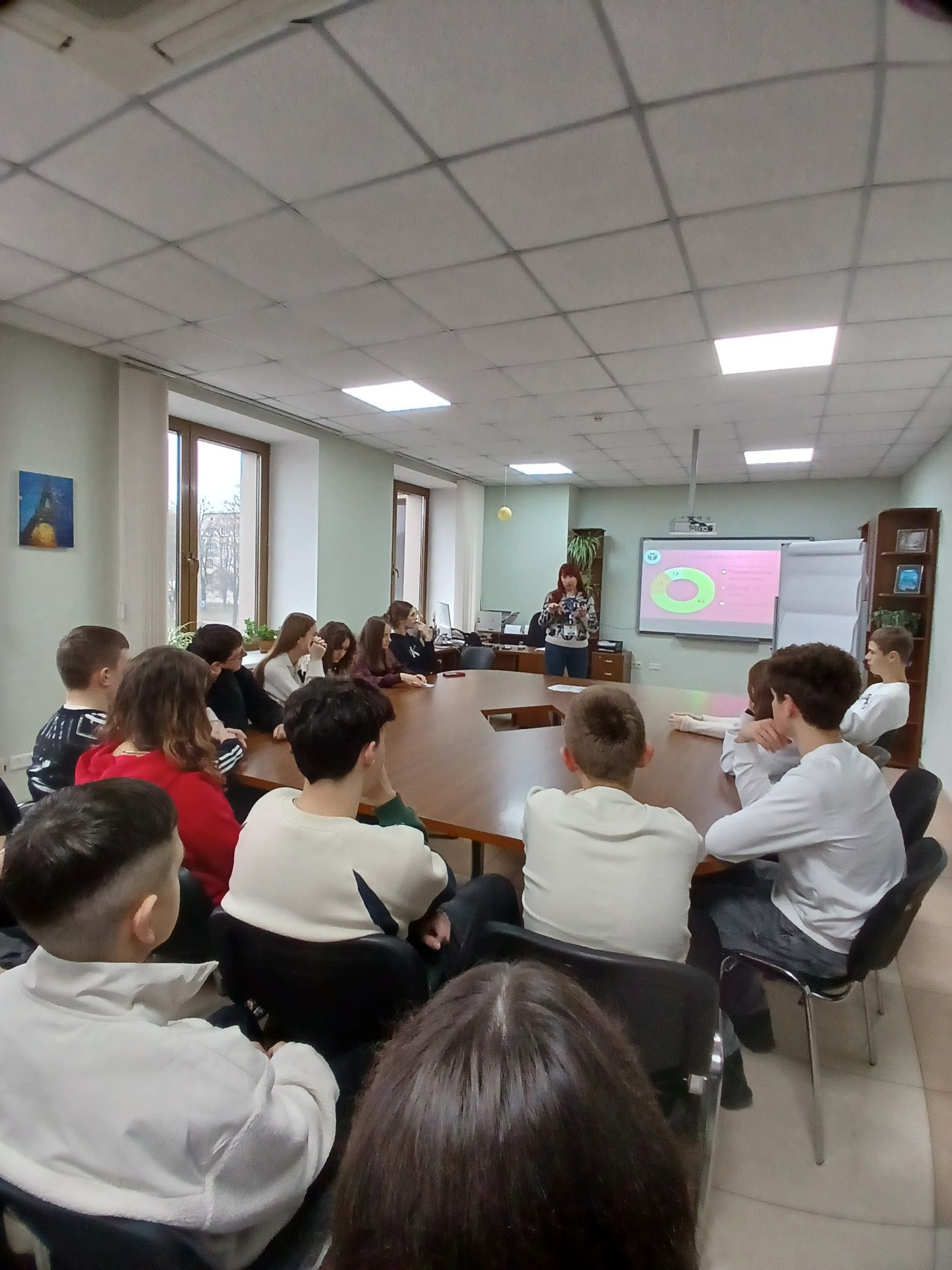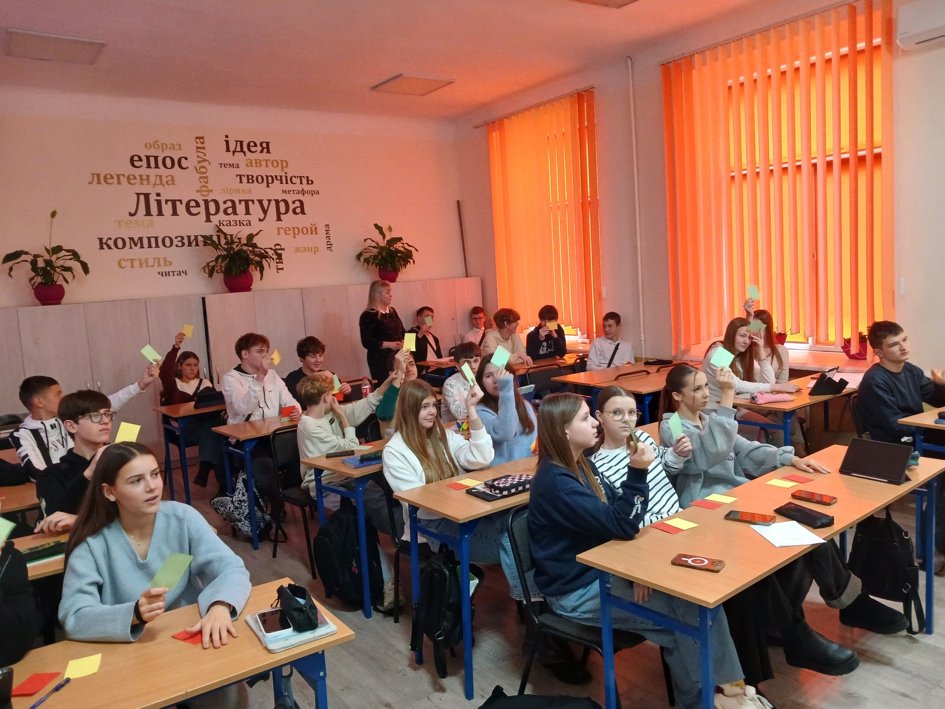 Аліна Грицаєнко, завідувачка сектору профорієнтації та психологічної підтримки, провела профорієнтаційні заняття на тему «Світ професій. Особливості вибору». Під час занять дев’ятикласники ознайомилися з різноманіттям сучасних професій, обговорили тенденції ринку праці та навчилися визначати власні інтереси й здібності, які можуть впливати на майбутній вибір. Особливу увагу було приділено важливості усвідомленого вибору професії, врахуванню власних цінностей, рис характеру та можливостей подальшого розвитку.