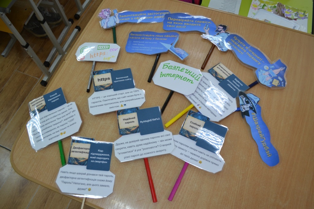За допомогою тестів, кросвордів та інших тематичних завдань учні вдосконалювали навички й розуміння того, як розпізнати та протидіяти цькуванню в мережі, шахрайським діям, пропозиціям легкого заробітку та втягненню в диверсійну діяльність.